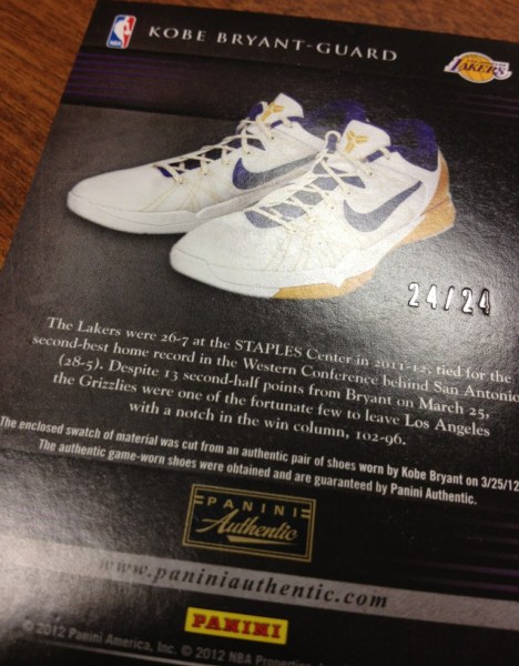 Could these cards be an indicator of more to come in its products? Or a series of standalone memorabilia cards sold via Panini Authentic, its game-used memorabilia division? Or, are they planned for the upcoming Kobe tribute set to be found in every single Panini brand this coming season?