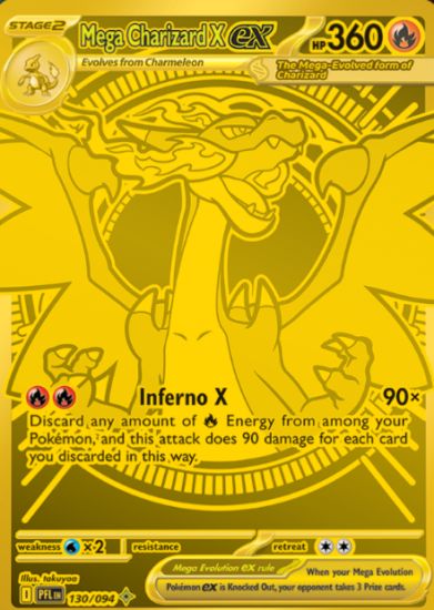 Ripping through packs, collectors will see standard set and standard set foil cards. There are 55 standard foil cards to chase to complete the set, 16 Ultra Rare, 12 Illustration Rare, 5 Special Illustration Rares cards, and 1 Mega Hyper Rare (Mega Charizard X ex).