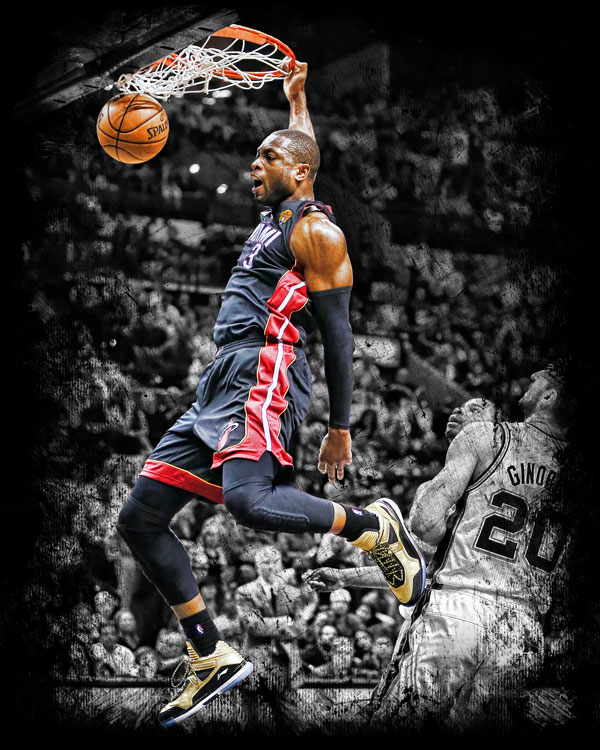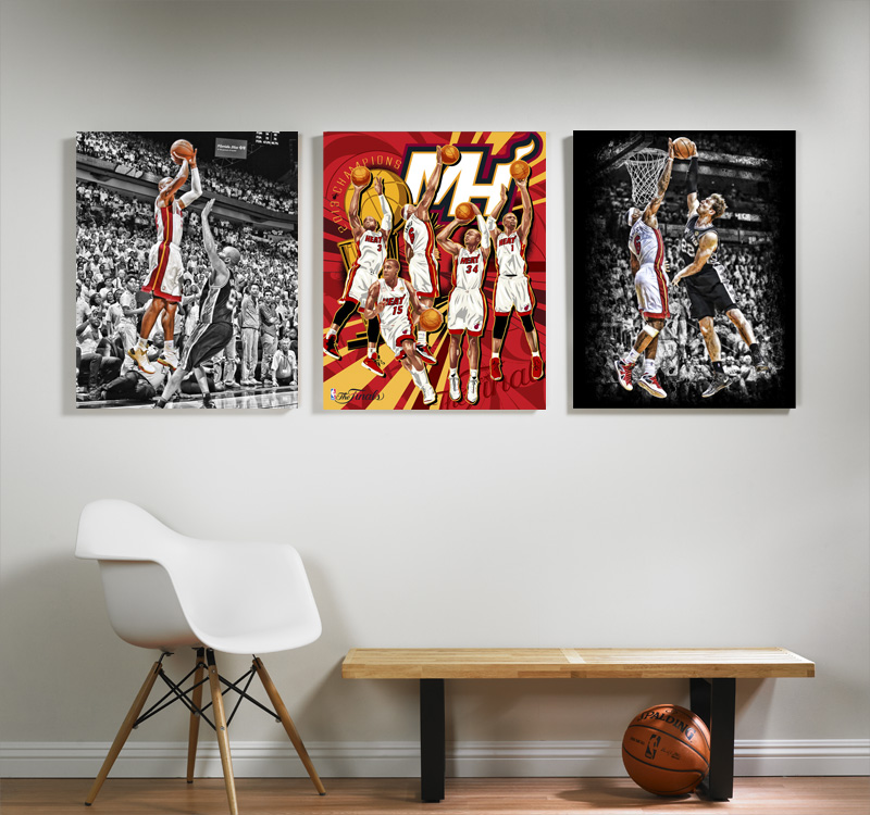 The company has five lithographs already available highlighting moments from the Finals, one being a championship montage by Mark Sgarbossa. The other four are renditions of photos from key plays, including one showcasing LeBron James‘ block of Tiago Splitter‘s slam dunk in Game 2.