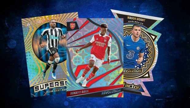2022-23 Panini Revolution Premier League Soccer checklist, team set lists, hobby box breakdown, print runs, release date, inserts and more. -