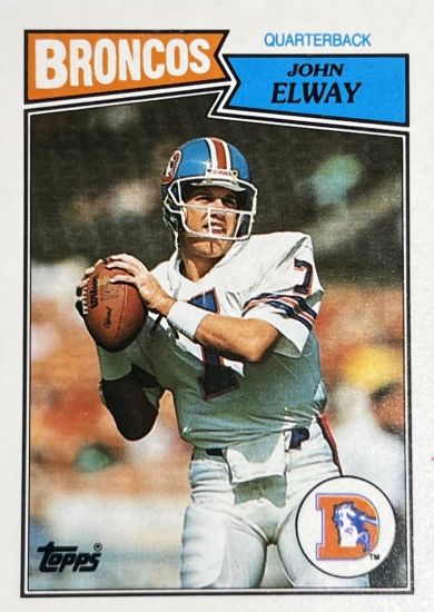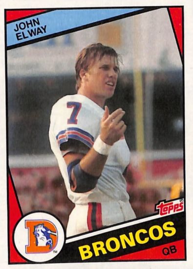 The must have card for all Elway collectors: 1984 Topps #63 John Elway RC. Mint values can go up to and over $100.