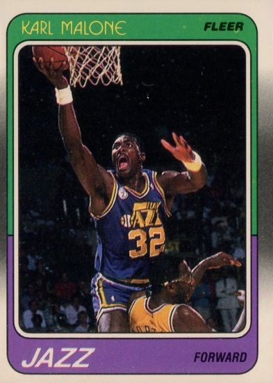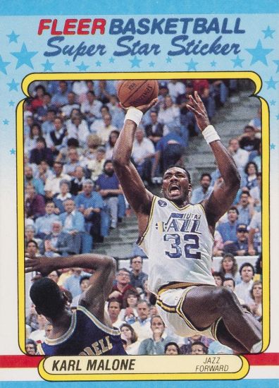 Of the trading cards, not including Fleer or Panini’s stickers, the 1988-89 Fleer #114 Karl Malone is the piece for the collection. Values range from $1.50 to $10 mint.