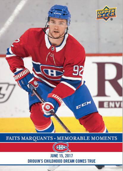In order to get a full set of cards that look back at the best moments that took place between 2008-09 and 2016-17, collectors attending L’Anti Expo must break 10 sealed packs purchased from a Certified Diamond Dealer on the floor of the following Upper Deck products at the company’s booth: 2017-18 O-Pee-Chee, 2017-18 Upper Deck MVP, 2017-18 Upper Deck Team Canada World Juniors, 2016-17 Fleer Showcase, and 2016-17 Upper Deck ICE.